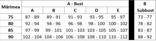 | Marime sutien | 75B, 75C, 75D, 80B, 80C, 80D, 85B, 85C, 85D |